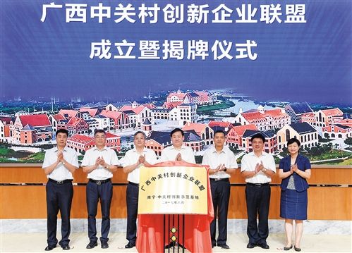 在南寧·中關村創新示范基地,廣西中關村創新企業聯盟成立暨首批會員揭牌儀式同時舉行。截至今年2月,中關村企業累計在廣西設立子公司221家,投資額總計94億元,分公司達549家。廣西中關村創新企業聯盟的成立對于加快聚集創新要素、構建創新發展生態,發揮南寧·中關村創新示范基地的輻射作用和溢出效應,將起到重要推動作用。