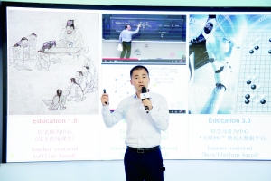 韓國VITRUV人工智能教育項目的創業團隊成員金賢洙在介紹產品情況。