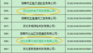 近日,邯鄲市科學技術局公布了2018年批納入國家科技型中小企業信息庫企業名單,園區企業河北創科電子科技有限公司、河北華厚天成環保技術有限公司、河北唯沃環境工程科技有限公司