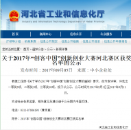 園區(qū)企業(yè)河北唯沃榮獲2017“創(chuàng)客中國”創(chuàng)新創(chuàng)業(yè)大賽河北賽區(qū)三等獎(jiǎng)